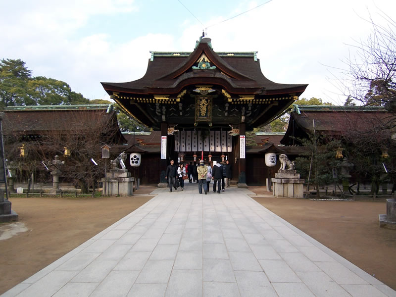 「北野天満宮」の社殿。京都に向かうJR東京駅で、ポスターになっていたので行ってみた。梅が有名らしい。