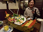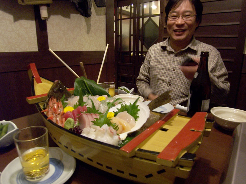 今回の参加者は4名(宴会4名、宿泊3名)。宴会の舟盛はいいですわ